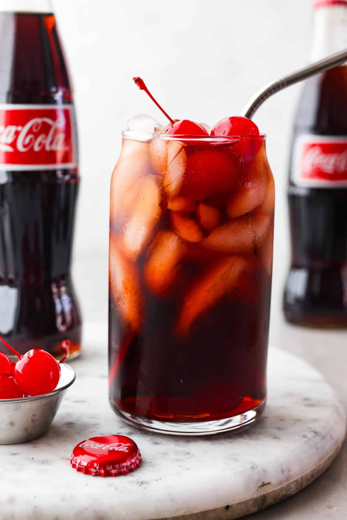 3. Finish and Serve: Top with the soda, then stir. Garnish with a maraschino cherry, and enjoy.