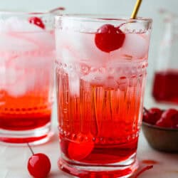 Shirley Temple is a classic, non-alcoholic drink that’s as fun as it is refreshing! It’s made with just a few simple ingredients. Its sweet cherry flavor and signature bubbly drink with a cherry on top make it a favorite for both kids and adults!